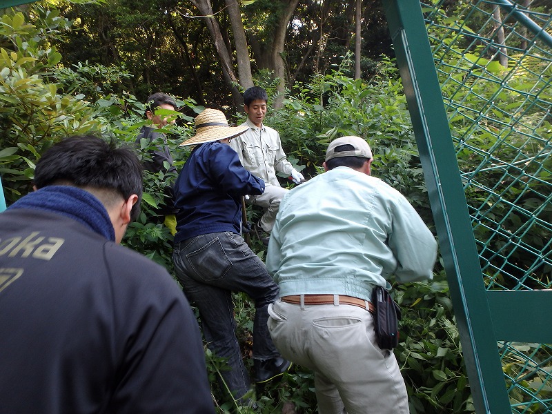 早速作業です。裏山のフェンスから上の場所を開拓します。しかし、最初から試練が!草が伸びすぎて入れない!大急ぎで草刈り!